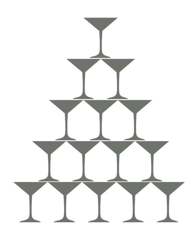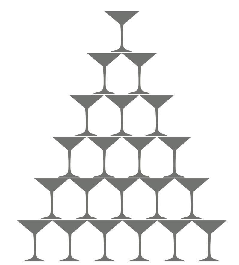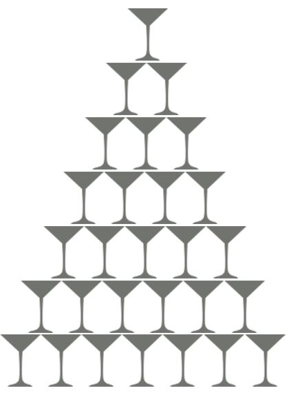Она состоит из бокалов «Мартиника», выстраивается на специальном столе со стеклянной столешницей откуда прямо в центр построенной пирамиды бьет свет, что придает ей в этот момент особую красоту.